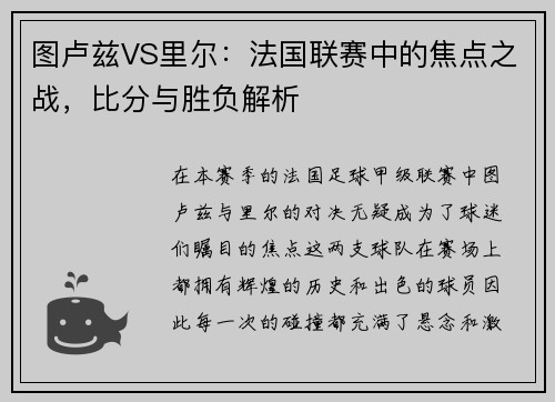 图卢兹VS里尔:法国联赛中的焦点之战,比分与胜负解析